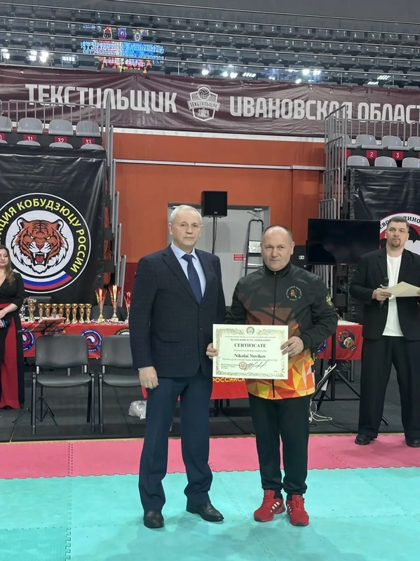 Также на торжественном открытии соревнований Президент Федерации кобудзюцу России Трифонов Николай Иванович, по результатам сданных квалификационных требований, вручил сертификаты мастерский степени черный пояс 4 дан главным тренерам сборной команды Брянской области Николаю Васильевичу Новикову и Александру Петровичу Лепешкину.